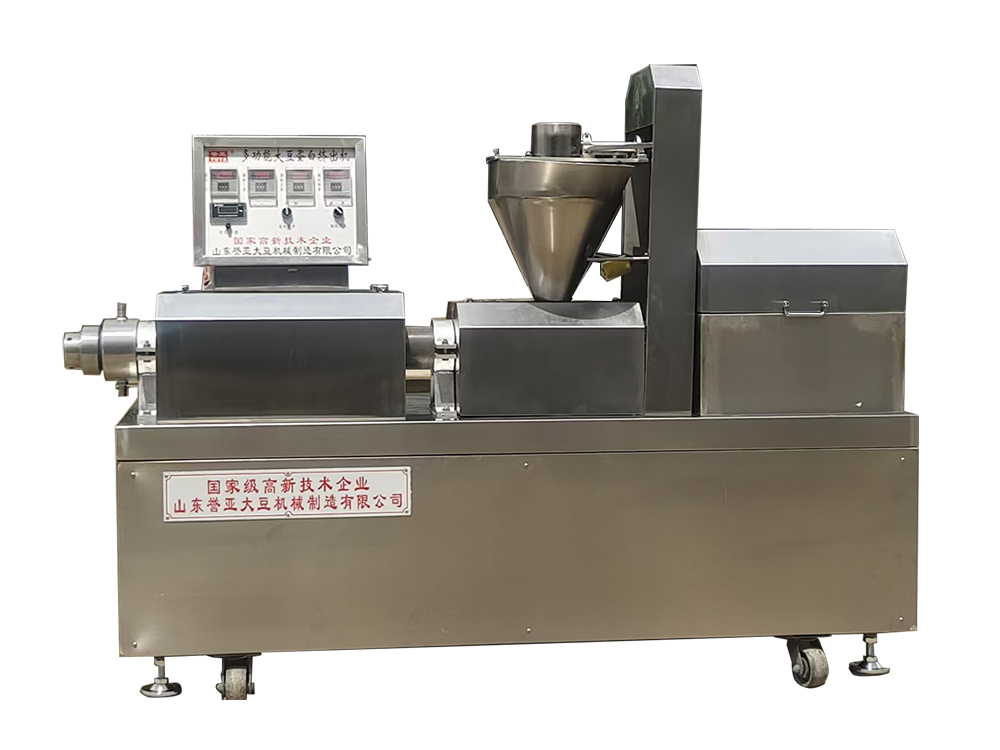 多功能豆制品挤压喷爆机本机采用全不锈钢包装,温度是数显自动控温,加温或降温均有信号灯显示,电流电压大小开机均有显示,自动喂粉可以调速,传动部分是本厂生产的豆制品机械专用减速机,电机架是钢板可调型,机器底部用的高档跑轮,便于移动,冷却部分是自动循环水装置,底部设有大容量的储水箱,正常生产可节约用电量的30% |